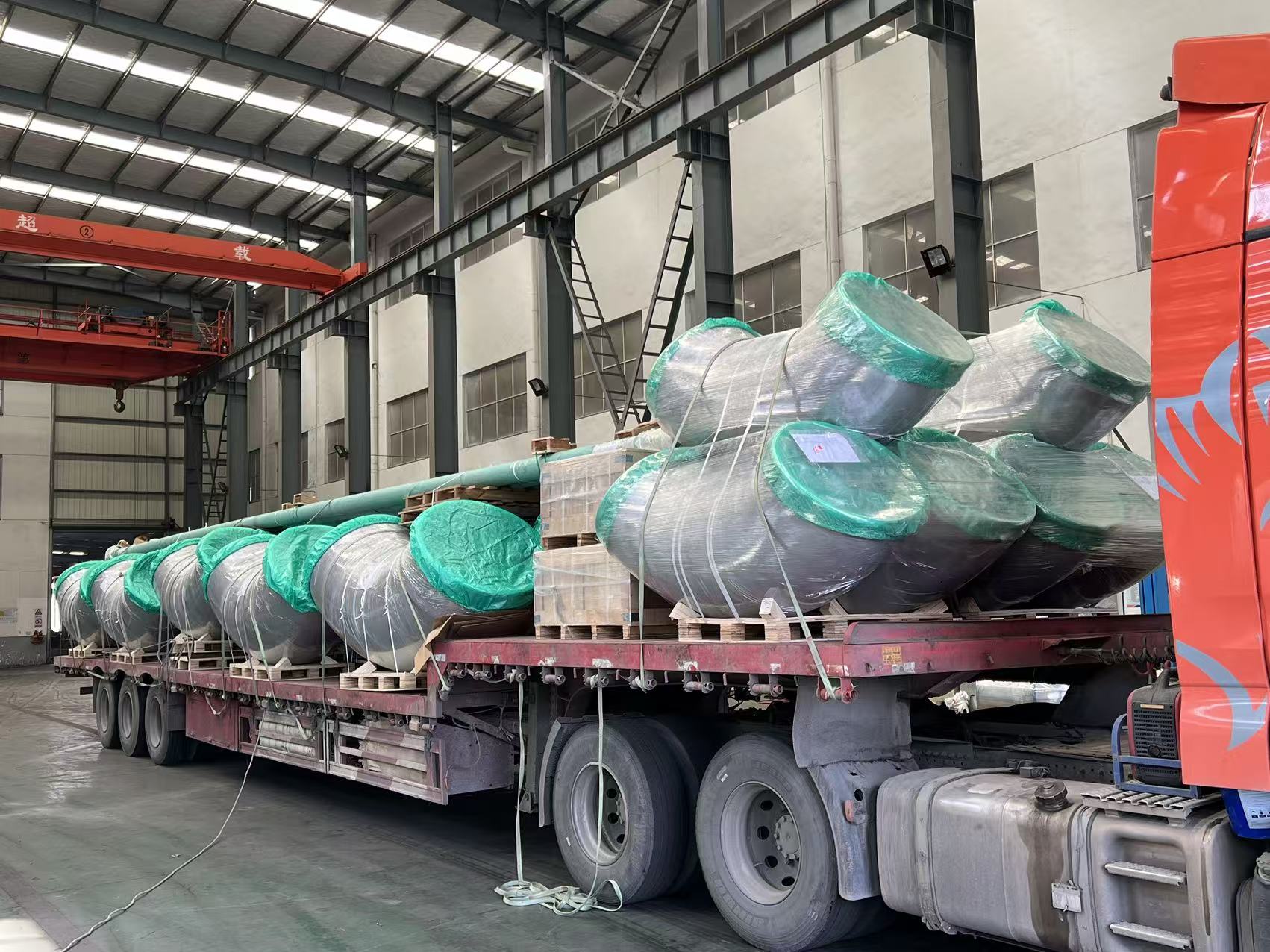 আজ, আমাদের দল সফলভাবে বড়-ব্যাসের স্টেইনলেস স্টীল পাইপ ফিটিংগুলির একটি সম্পূর্ণ ট্রাকলোডের লোডিং এবং প্রেরণ সম্পন্ন করেছে। দীর্ঘ-ব্যাসার্ধ কনুই এবং কাস্টম-গঠিত স্পুল সহ সমস্ত উপাদানগুলিকে নিরাপদ পরিবহন নিশ্চিত করার জন্য শক্তিশালী মোড়ক এবং শেষ ক্যাপ দিয়ে সাবধানে সুরক্ষিত করা হয়েছিল।