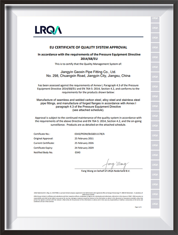 | সার্টিফিকেট | PED, AD2000, EAC, ABS, BV, DNV, NORSOK M650, ISO9001, ISO14001, ISO45001, ইত্যাদি। |